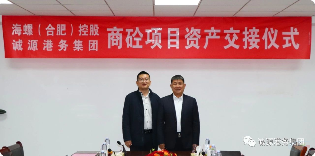 2023年11月22日,在安徽省蚌埠市淮上区力源产业园区会议室,“世界500强”安徽海螺集团旗下全资子公司海螺(合肥)控股有限公司与诚源港务集团举行“商砼项目资产交接仪式”。