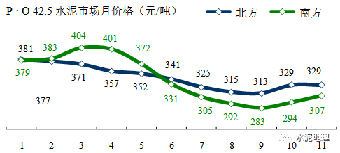 11月16日,全国P • O 42.5 水泥价格327元/吨。与2018~2022年同期价格平均价差132元/吨。