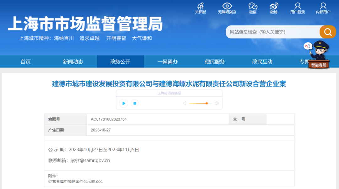 海螺水泥与建德城投成立合营企业