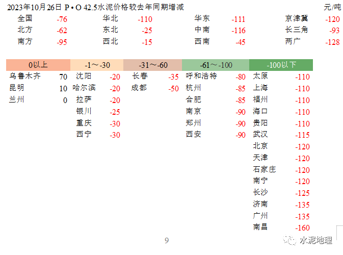 华北、华东、中南三地,下跌100元/吨以上,幅度26%以上。