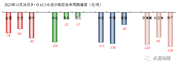 10月26日,全国价格较去年同期下跌76元/吨,南方下跌95元/吨,北方下跌62元/吨。
