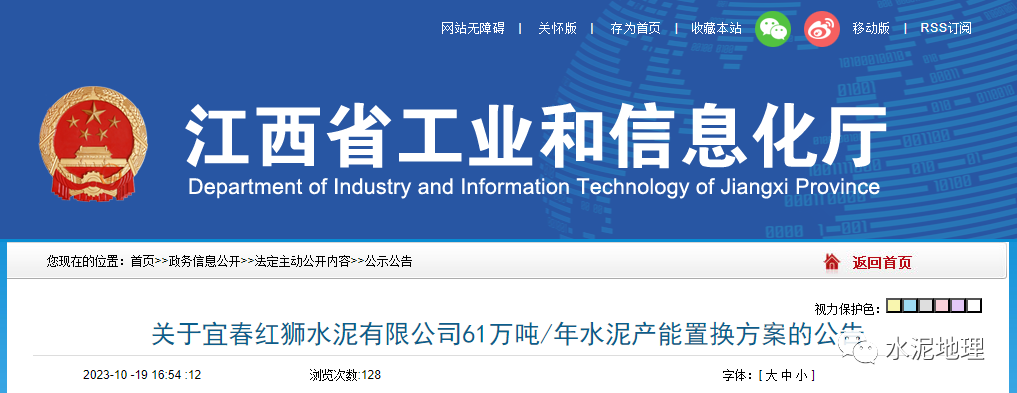 宜春红狮水泥61万吨/年水泥产能置换方案公告