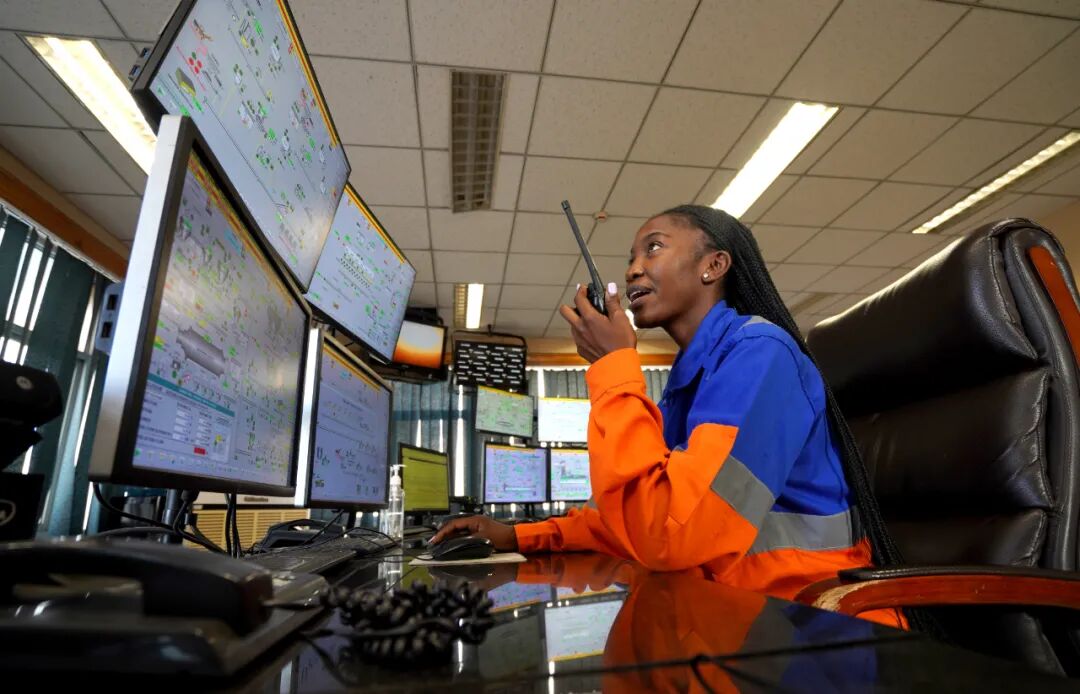 华新赞比亚奇兰卡公司赞籍员工Muka Hamoonga在中控室工作。