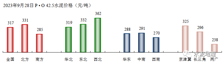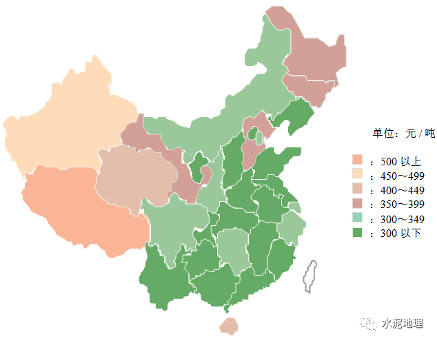 京津冀325元/吨,长三角296元/吨,两广238元/吨。