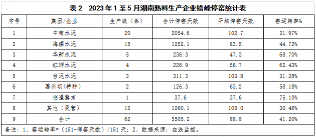 2023年度常态化错峰停窑不少于160天,分季度实施。现按上半年停窑执行情况及市场需求来看,