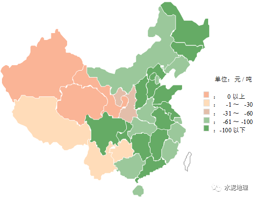 西北较去年同期增长4元/吨,西南下跌,80元/吨,其他四地都在100元/吨以上。