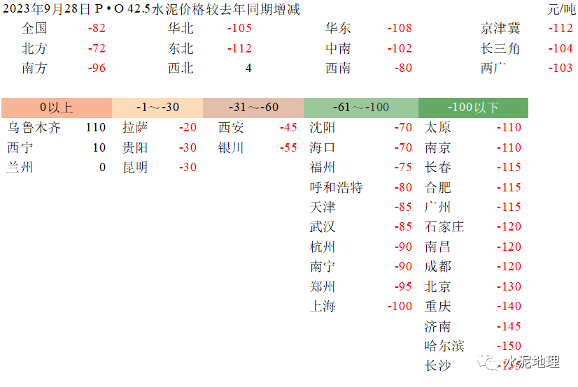 9月28日,全国价格较年初下跌82元/吨,南方下跌96元/吨,北方下跌72元/吨。