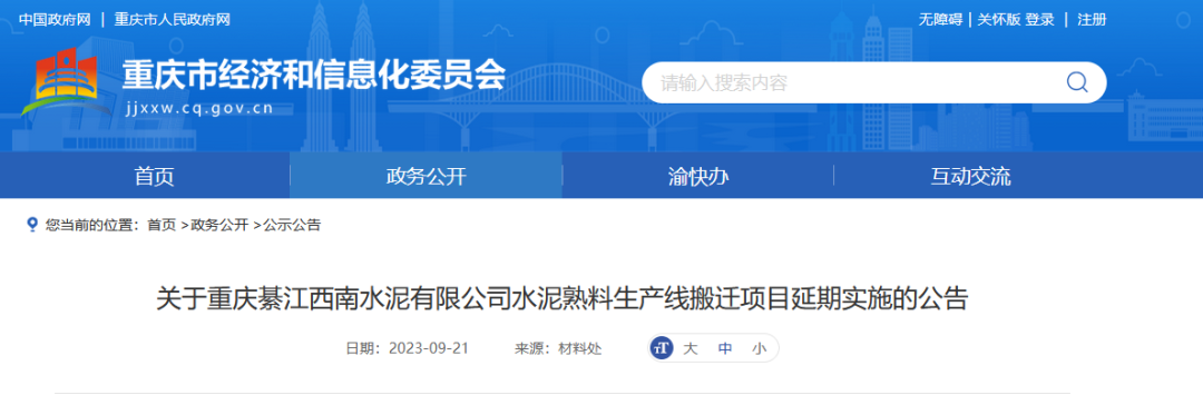近日,重庆市经济和信息化委员会发布两条水泥熟料线搬迁项目审批进展。