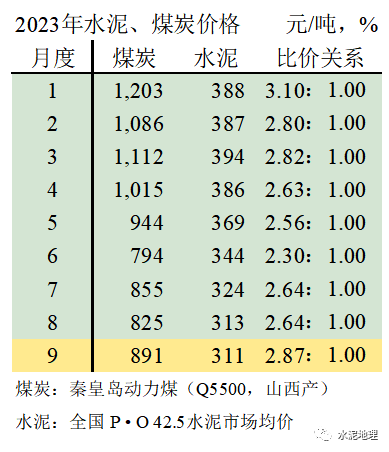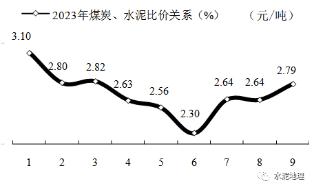 煤炭水泥比价2.79:1.00,高于上月2.64:1.00;低于去年同期煤炭水泥比价3.60:1.00。