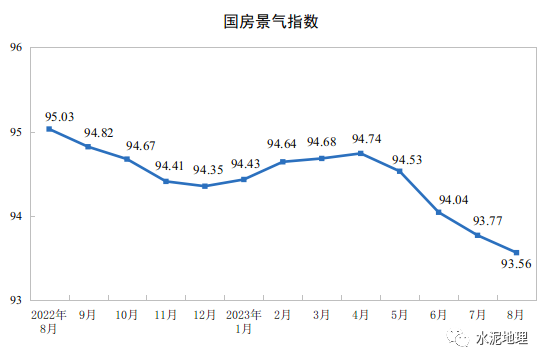8月份,房地产开发景气指数(简称“国房景气指数”)为93.56。