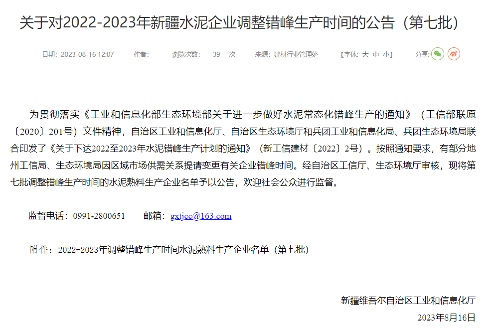 责成补足违规开窑天数!又有两家水泥企业调整错峰生产时间!