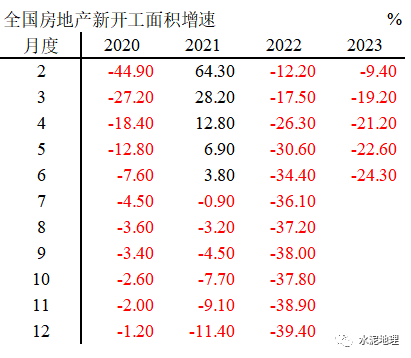 面对房地产下行,国家出台保交房政策,加快房地产竣工速度,2023年1~6月增速较去年同期增长19.00%,扭转了下行态势,环节市场压力。