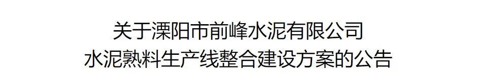 根据《国务院关于化解产能严重过剩矛盾的指导意见》(国发〔2013〕41号)、《工业和信息化部关于印发水泥玻璃行业产能置换实施办法的通知》(工信部原〔2021〕80号)等文件要求,经企业申报、地方主管部门审查、省级主管部门审核、网上公示等程序,现将溧阳市前峰水泥有限公司水泥熟料生产线整合建设方案予以公告,欢迎社会公众进行监督。