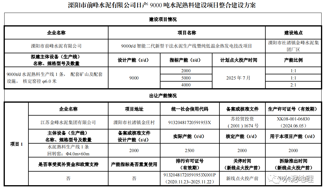 附件:溧阳市前峰水泥有限公司日产9000吨水泥熟料建设项目整合建设方案