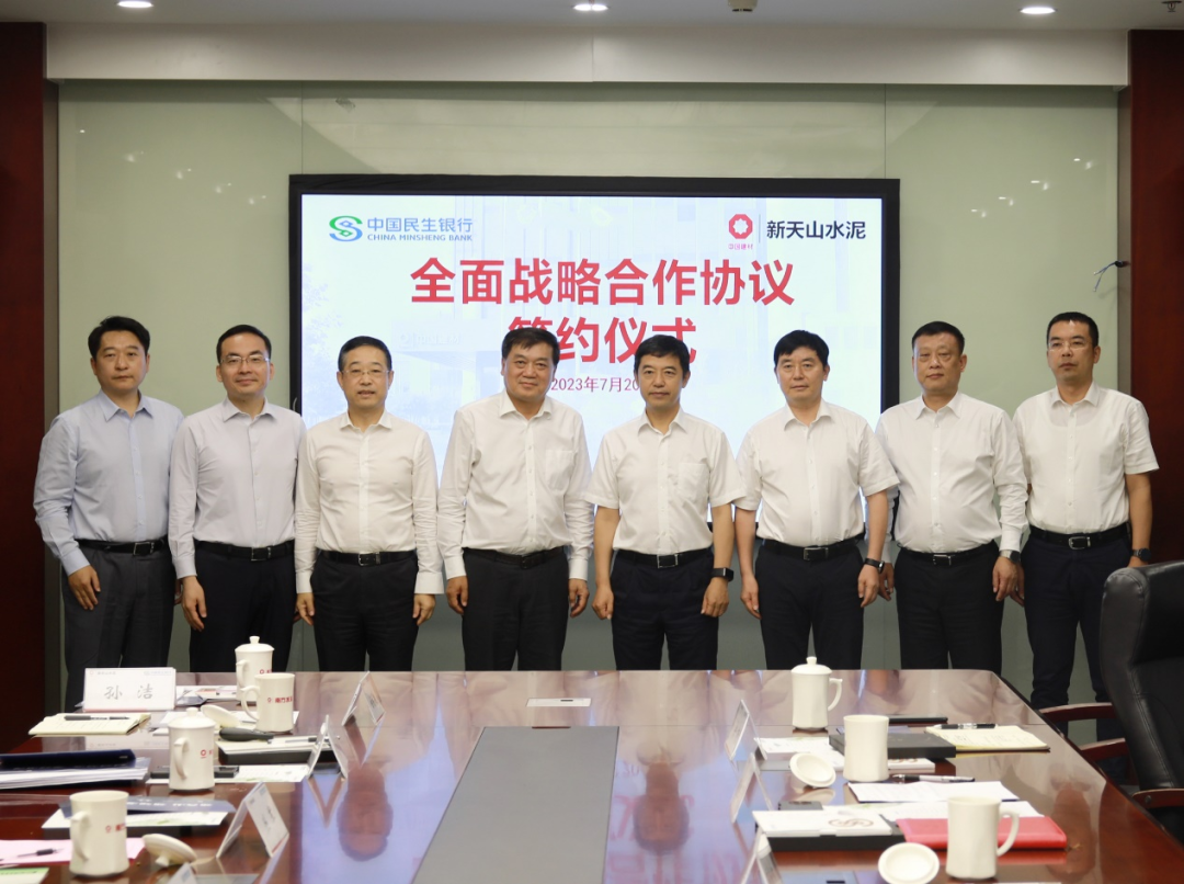 自2011年来,民生银行一直与新天山水泥下属重点企业开展了深入而广泛的合作。为深化新天山水泥与民生银行在金融领域全面战略合作,双方促成了此次签约仪式。作为首批与新天山合作的金融机构之一,未来民生银行将不仅在信贷支持、投行业务等方面为公司提供更多元化的服务和支持,还将在境外融资、绿色金融、低碳发展、精益管理、供应链金融、员工金融服务等六大领域开拓新的合作空间。