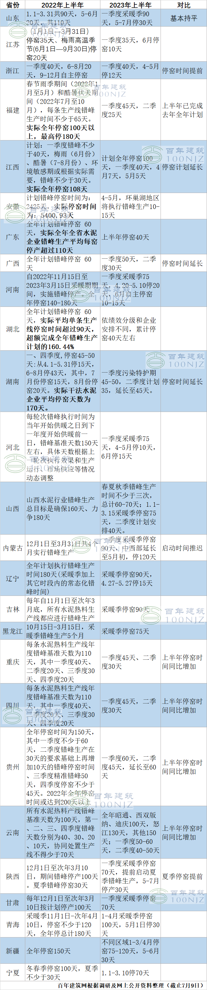 错峰生产是保证水泥行业适应市场变化和符合环境要求的有效途径,可以保障水泥有效供给,实现行业效益稳增长的目的。上半年需求整体表现不佳,多地窑线错峰较往年有所变化: