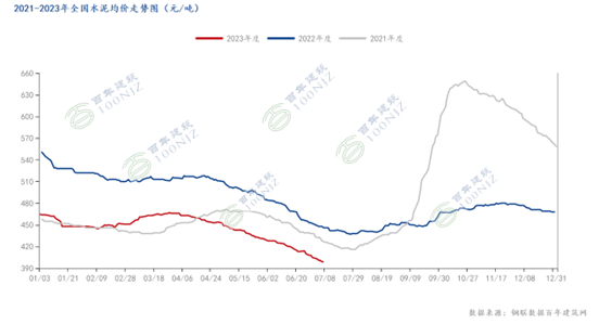 据百年建筑数据显示,上半年全国448元/吨,同比下跌11.8%,截至6月30日,全国水泥均价406元/吨,为近五年最低价。