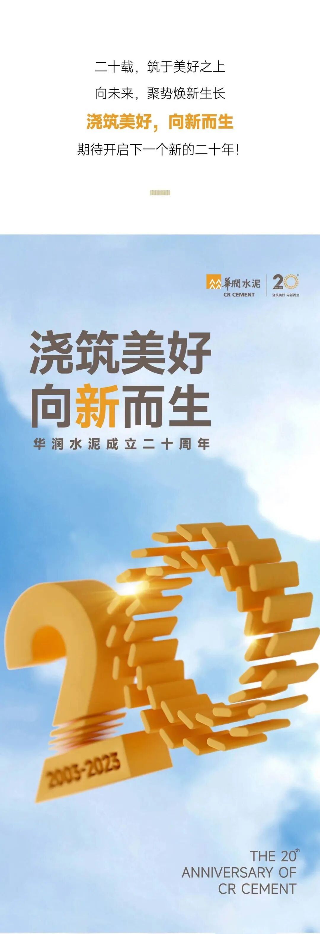 浇筑美好 向新而生 | 华润水泥二十周年LOGO重磅发布