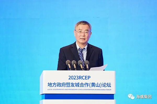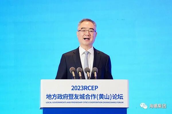 在区域全面经济伙伴关系协定(RCEP)进入全面实施新阶段之际,6月9日上午,由中国人民对外友好协会、安徽省人民政府主办的2023RCEP地方政府暨友城合作(黄山)论坛开幕式暨主旨报告在黄山市举行,全国人大常委会副委员长蔡达峰出席并讲话,省长王清宪、中国人民对外友好协会会长林松添致辞。泰国副总理威萨努·科岩,老挝建国阵线中央副主席占塔冯·显阿玛蒙迪,中国驻东盟大使侯艳琪,东盟秘书长高金洪分别致辞。海螺集团党委书记、董事长杨军,集团副总经理王建超等应邀参加了开幕式暨主旨报告会。