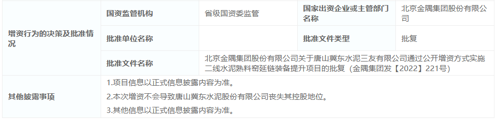 相关信息显示,北京金隅集团股份有限公司此前已做出关于唐山冀东水泥三友有限公司通过公开增资方式实施二线水泥熟料窑延链装备提升项目的批复(金隅集团发【2022】221号),本次募集资金的用途是用于项目运营。