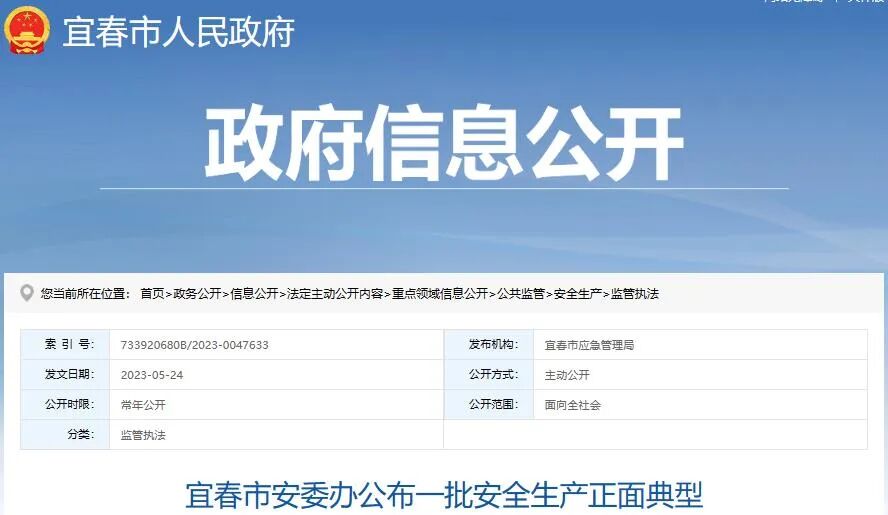 5月24日,江西省宜春市安委办公布一批安全生产正面典型。其中包括宜春红狮水泥有限公司创建安全生产标准化企业、江西上高南方有限公司水泥用灰岩矿龙尖头矿段打造安全示范矿山、宜春红狮水泥有限公司袁州区苍前矿区水泥用灰岩矿强化安全风险防控三个水泥企业案例。
