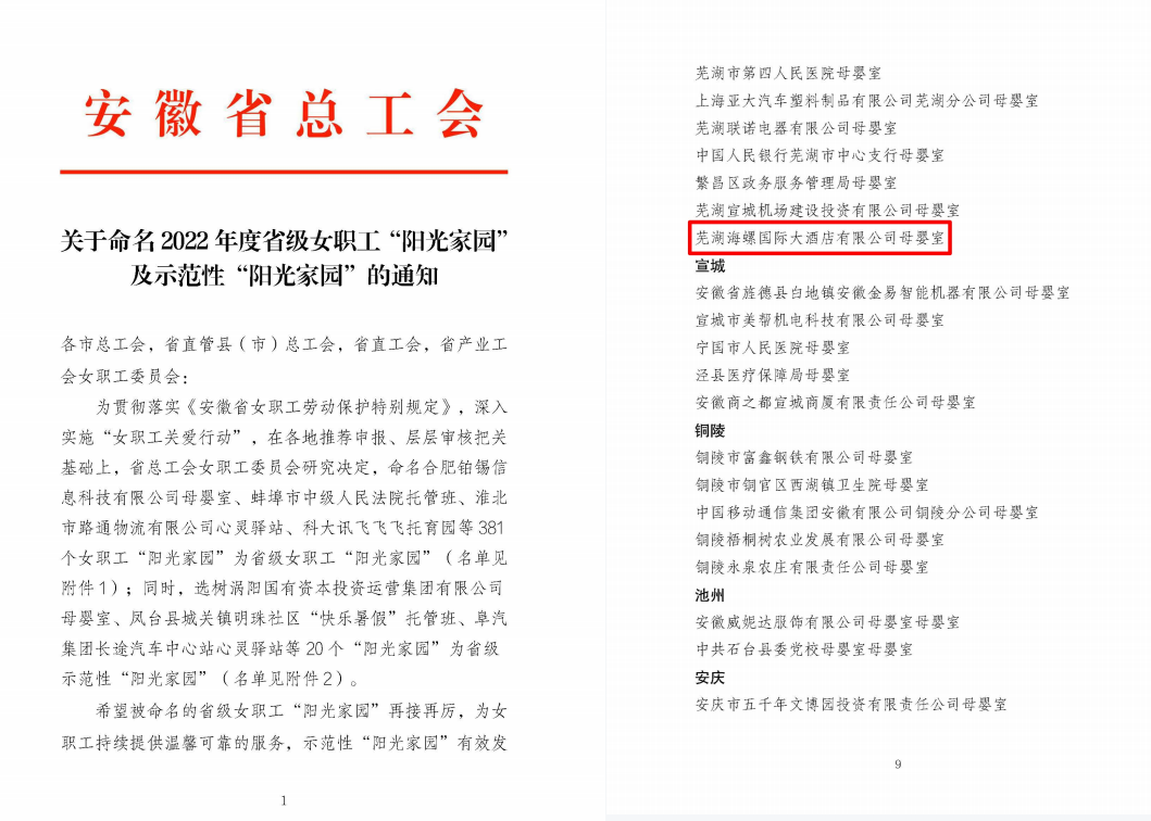 获评 安徽省“女职工阳光家园”