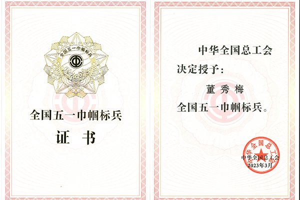荣获 全国“五一巾帼标兵”称号
