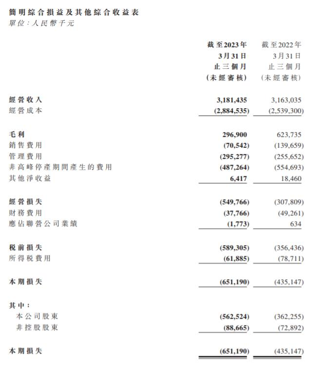 山水水泥:2023年一季度股东应占亏损5.63亿元