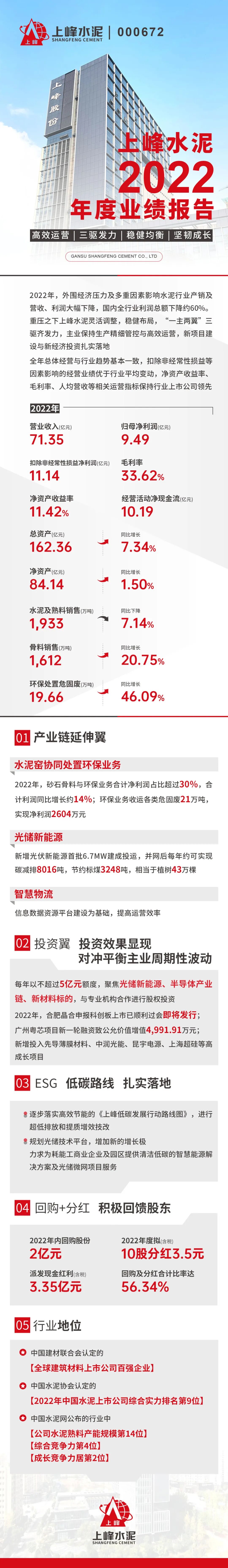 上峰水泥2022年成绩单公布