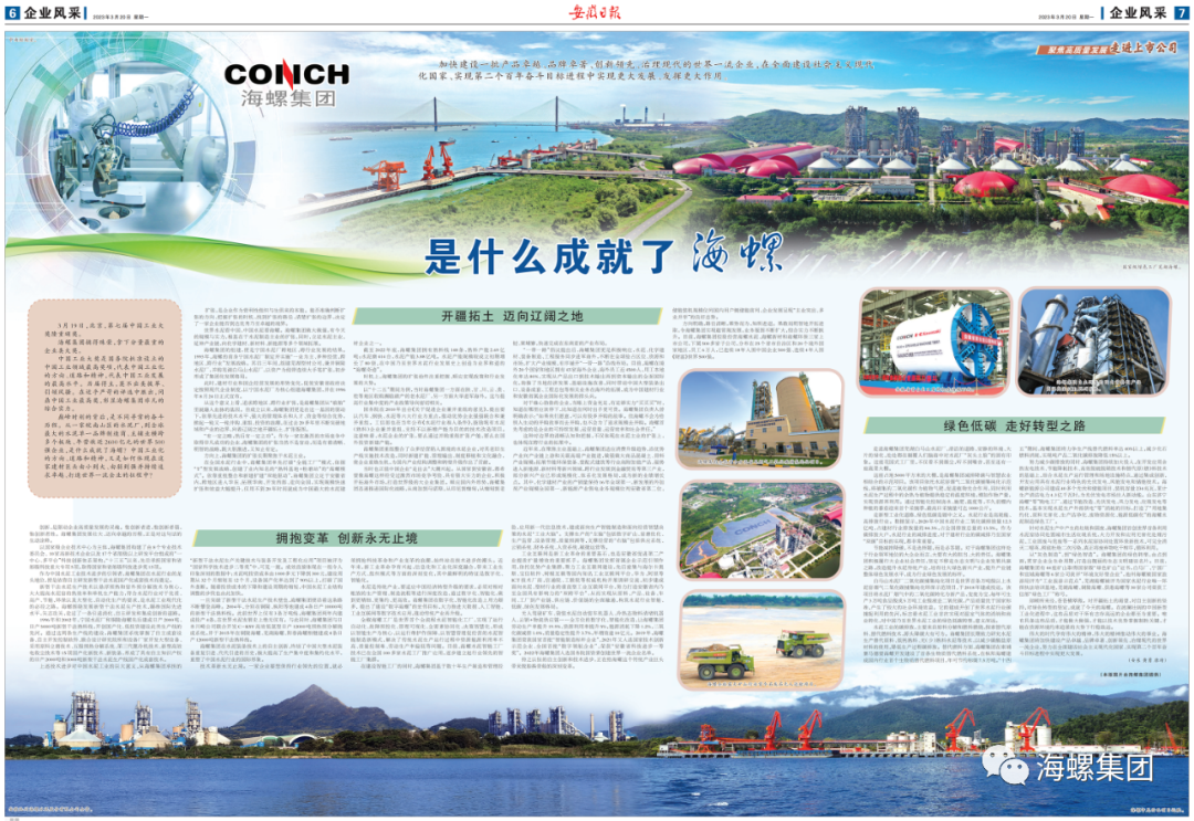 却顾所来径,苍苍横翠微。对开疆拓土的渴望,对自主创新的坚持,对绿色转型的坚定,成就了今天的海螺。在波澜壮阔的中国新型工业化进程中,这些品质对于所有志存高远的企业都至为重要。唯有具备这些品质,才能做大做强,才能以技术优势掌握制胜关键,才能在资源环境约束趋紧的大势下行稳致远。