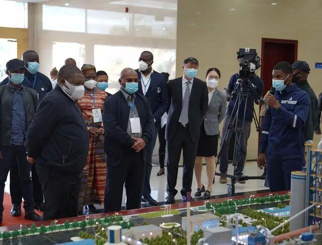 王贺军大使陪同纽西总统参观了水泥生产和相关设施。王大使在与企业座谈中表示,近年来,中莫双方在团结抗疫、改善民生、基础设施建设、农业发展、教育和科技进步以及应对莫北部恐袭局势等领域取得了多项成果,莫已成为我开展国际产能合作以及“一带一路”倡议对非延伸的重要伙伴。中莫双方克服疫情带来的不利影响,相互支持配合,在莫建设完成了产能最大,生产工艺最先进的水泥生产线,这是双方相互尊重信任,加强务实合作的又一重要成果。希望海牛与莫方加强合作,妥善处理各伙伴之间关系,积极履行社会责任,助莫完善现代工业体系,成为在莫负责任、可信赖、互利共赢的社会成员。