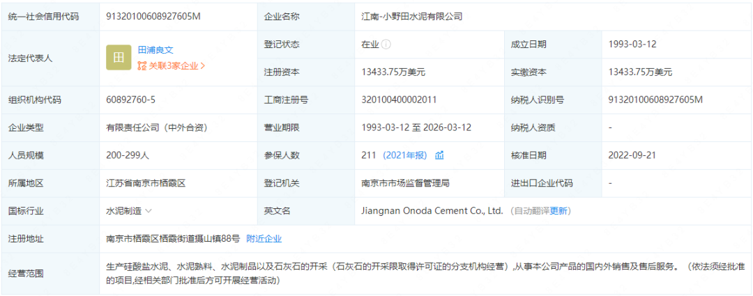 此前江苏省工信厅发布的水泥熟料生产线清单显示,江南小野田拥有一条4000t/d水泥熟料线。
