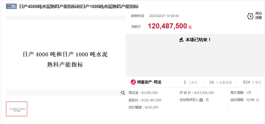 1.2亿元拿下!4000t/d+1000t/d熟料产能指标交易成功