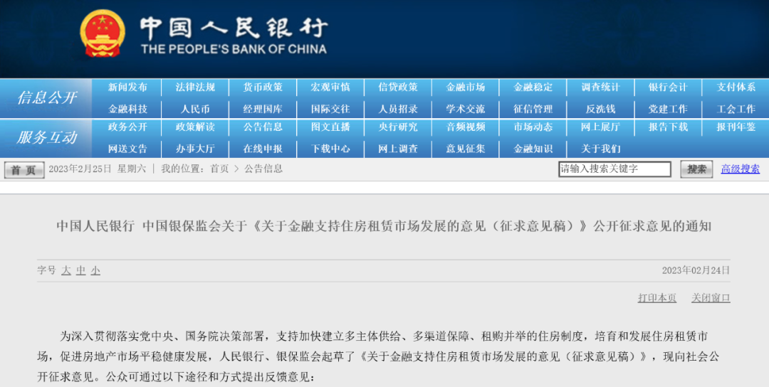 为加快住房租赁金融市场规范发展,人民银行、银保监会起草了《关于金融支持住房租赁市场发展的意见(征求意见稿)》,并向社会公开征求意见。