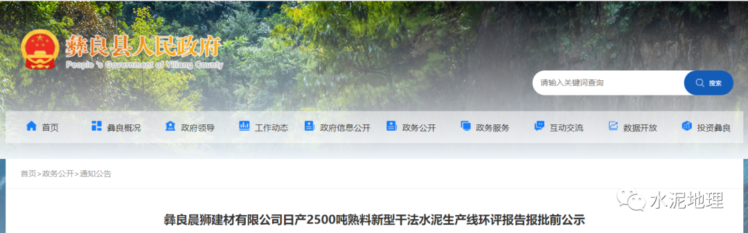 公示文件提到,彝良晨狮建材有限公司拟建设一条规模2500t/d熟料、采用五级运行的旋风预热器带在线喷腾式分解炉的新型干法水泥生产线,设计年运转天数300天、年产水泥熟料75.0万吨,年产水泥104.5万吨,产品为PF32.5水泥约36.6万吨、P.O42.5水泥约62.7万吨、PⅡ52.5水泥5.2万吨,水泥袋装与散装的比例为40%:60%。