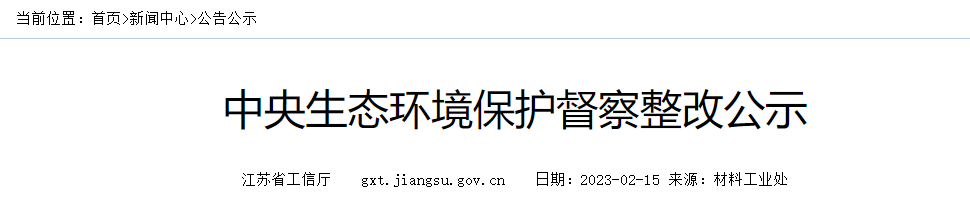 对照《省委办公厅 省政府办公厅关于印发江苏省贯彻落实第二轮中央生态环境保护督察报告整改方案的通知》(苏办厅字﹝2022﹞63号)要求,该项整改任务已按期完成整改目标。如对该问题整改完成情况有异议,请在公示期间(2023年2月15日至2023年2月28日)向江苏省工业和信息化厅反映。
