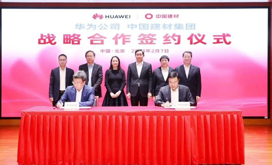 2月7日,中国建材集团与华为技术有限公司在京举行战略合作协议签约仪式。根据战略合作协议,双方建立战略合作伙伴关系,在新材料研发、数字化、绿色低碳、国际化等领域紧密合作,推动双方实现高质量发展。中国建材集团党委书记、董事长周育先,华为公司副董事长、轮值董事长、首席财务官孟晚舟出席签约仪式并见证签约。中国建材集团党委常委、副总经理王于猛主持签约仪式,集团信息化建设和数字化转型工作小组执行副组长、中国建材股份党委委员、副总裁余明清与华为公司煤矿军团市场与产业发展总裁刘维代表双方签署协议。中国工程院院士、中国建材集团总工程师、凯盛科技董事长彭寿出席签约仪式。