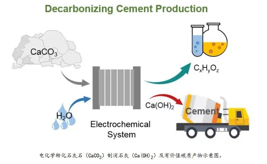 针对石灰石(CaCO3)热分解生成生石灰(CaO)过程中排放二氧化碳(CO2)的难题,罗景山课题组基于以往报道的电化学转化CaCO3制备Ca(OH)2研究,并结合课题组在电化学水分解和二氧化碳还原反应方面的研究基础,提出了一种基于电化学系统的石灰石转化生产消石灰和有价值碳质产物的方法。有别于石灰石高温热解方法,该方法不排放二氧化碳,而是将石灰石中的碳元素直接转化成有价值的碳质产物,可以用作燃料和化学品,为水泥行业碳减排提供了新的思路。