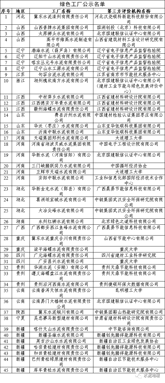 其中,冀东水泥滦州有限责任公司、山西晋牌2020欧洲杯下注官网 有限公司、太原狮头水泥有限公司等45家水泥企业入选2022年绿色工厂名单。
