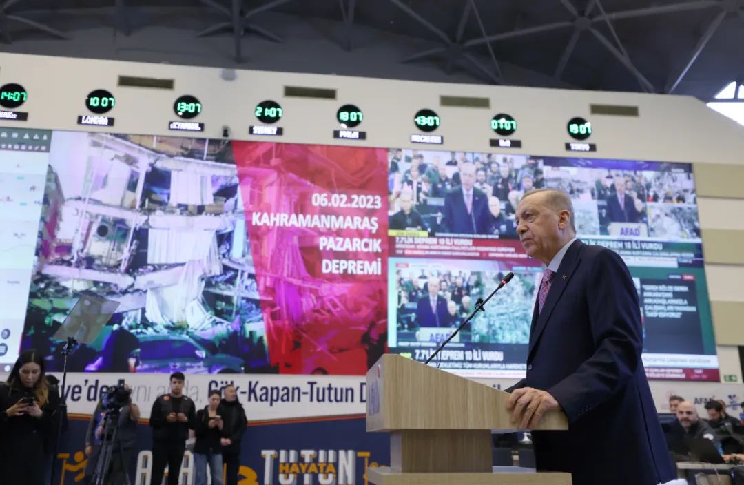 当地时间2023年2月6日,土耳其安卡拉,土耳其总统埃尔多安在协调中心向媒体发表讲话