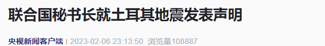 当地时间2月6日,联合国秘书长古特雷斯通过发言人发表声明,表示对当天早些时候土耳其地震造成大量人员伤亡深感悲痛。