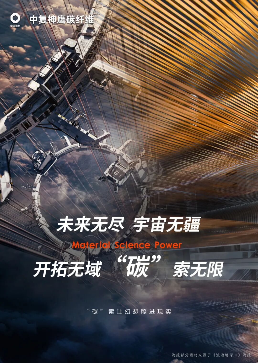 《流浪地球》作者说:“太空电梯最大的障碍是它的材料,要把一根钢索从地球延伸到三万公里高空,目前我们强度最高的材料就是碳纤维。”这个任务,交给我们!高性能碳纤维强度是普通钢材的10倍,具有极高的耐磨性和耐腐蚀性,可以有效抵抗外界环境的侵蚀作用。中复神鹰定不负众望,为航天强国贡献力量,助力太空“天梯”在将来成为现实!