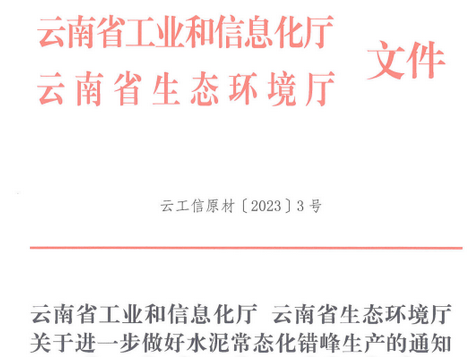 近日,云南工信厅 云南生态环境厅联合发布了《关于进一步做好水泥常态化错峰生产的通知》。