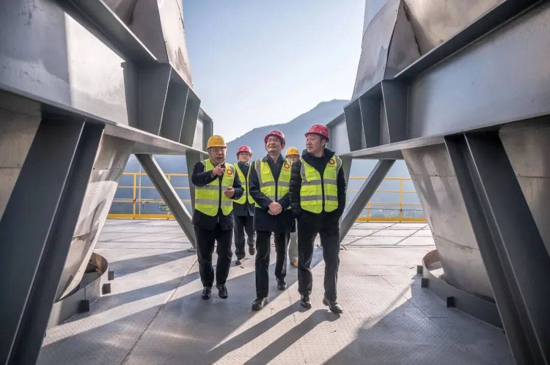 周育先现场考察了建德南方一期日产5000吨熟料水泥生产线,先后踏看了窑头平台、预热器、生料磨车间和水泥自动包装系统,了解优化升级项目一年来的运行情况,详细询问新装备新技术的运用和智能化场景应用,对各项技术指标给予充分肯定。