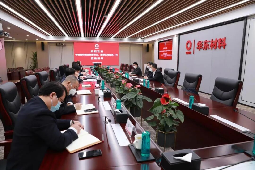 华东材料党委书记、总裁王盛伟,南京玻纤院党委书记、董事长张文进,中材国际(南京)党委书记、董事长刘仁越,中复神鹰董事长张国良,华东材料领导班子及相关部门负责人参加座谈会。