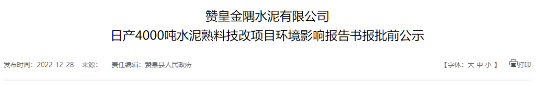 金隅冀东又一条4000t/d水泥熟料生产线项目报批!
