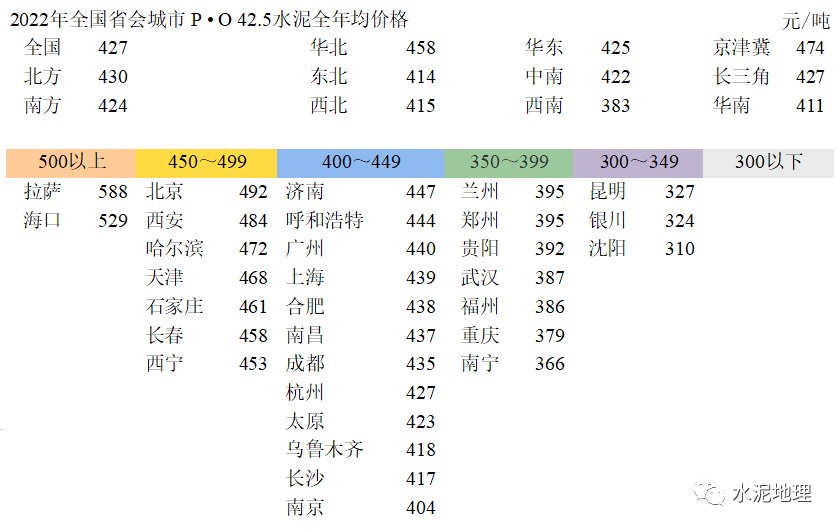 400~499元/吨省会城市,海口、石家庄、南昌、贵阳、天津、北京15个,北方10个,南方5个;