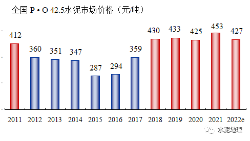 2022年全国P • O 42.5普通水泥全年平均价格427元/吨,继2018年连续5个年头,也是自2011年以来第6个年头站在400元/吨之上。水泥产量自上世纪70年代以来首度出现两位数大幅下滑(全国2022年1~11月累计水泥产量19.5亿吨,较上年同期下滑10.8%),2022年煤炭价格(秦皇岛动力煤,Q5500,山西产)较2020年增长1.2倍。水泥价格在需求超跌,煤炭成本大幅上涨背景下,稳在这个价位难度非常大。同样情况若发生在2015年,价格下跌幅度可想而知。