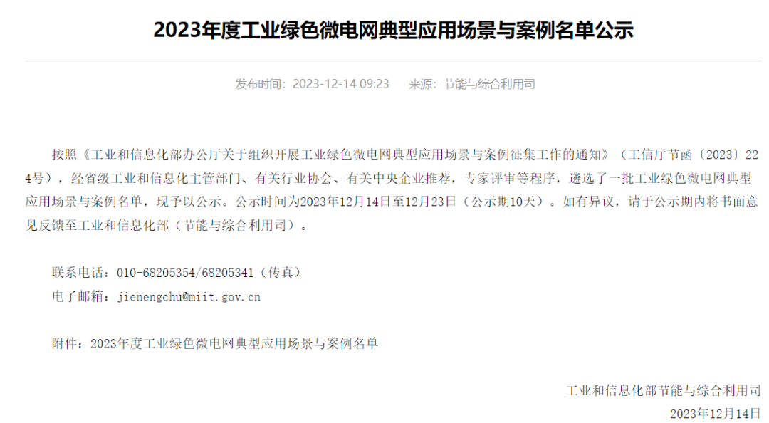 同日公布的《2023年度工业绿色微电网典型应用场景与案例名单公示》中,济宁海螺水泥有限责任公司零外购电智慧微网和葛洲坝宜城水泥有限公司工业绿色微电网入选。