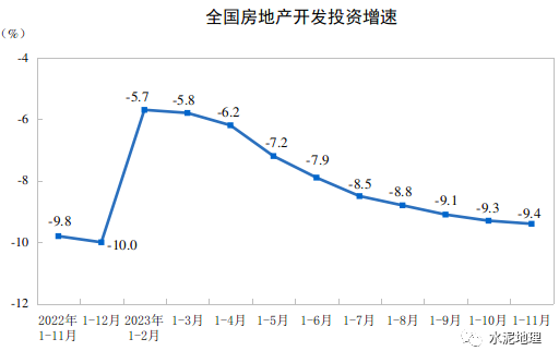 2023年1-11月全国水泥产量18.67亿吨,同比下降0.9%